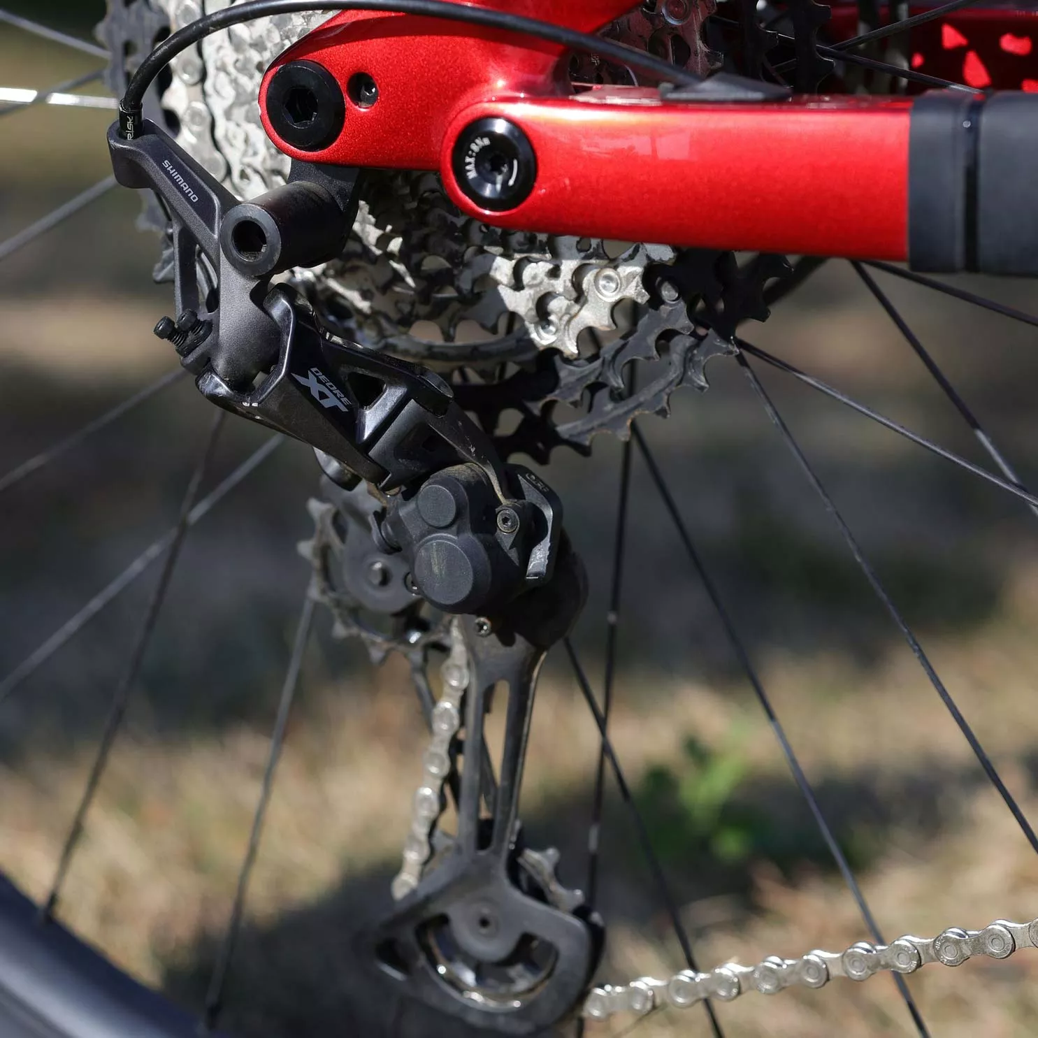 车架采用高强度碳纤维制造,重量约3千克,强化关键部位以应对多样地形的全地形软尾山地车,平衡爬坡和下坡性能,碳纤维软尾设计结合轻量车架与全避震系统,提供多功能性和舒适性,前叉行程为170mm,后避震行程150mm,全能性能与高端科技的结合,适合追求多样骑行体验的爱好者。